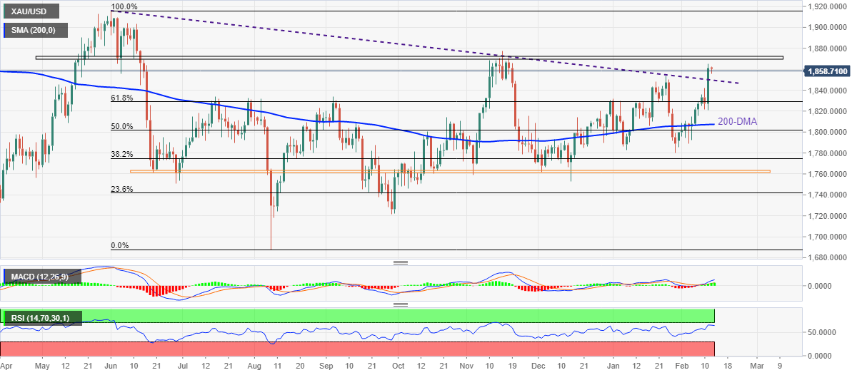 However, a horizontal area comprising multiple levels marked since May, near $1,873, will be a crucial upside barrier for the metal to cross ahead of targeting the $1,900 threshold.
