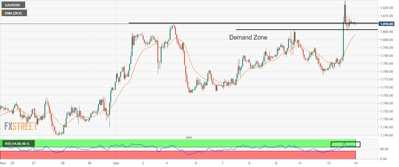 Gold price (XAU/USD) is juggling around the immediate support of $1,810.00 in the Tokyo session. The precious metal has corrected after printing a fresh five-month high at $1,824.51 on Tuesday. Fresh blood was infused in Gold price after the release of a soft inflation report for November month.