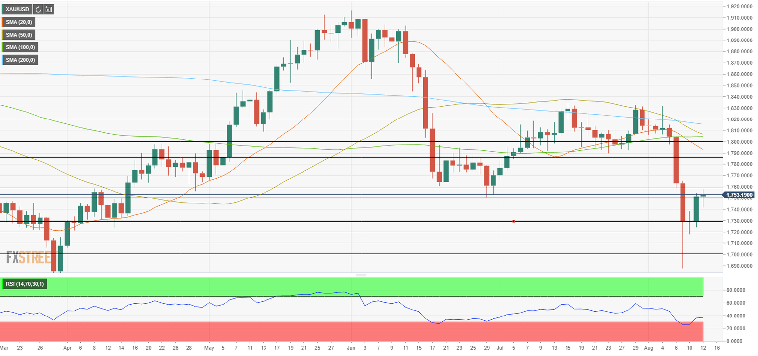 The sharp decline witnessed in the US Treasury bond yields and the renewed USD weakness following the July CPI inflation report from the US helped XAU/USD gain traction on Wednesday. Although the pair managed to advance to a daily high of $1,758 earlier in the day, it failed to preserve its bullish momentum.