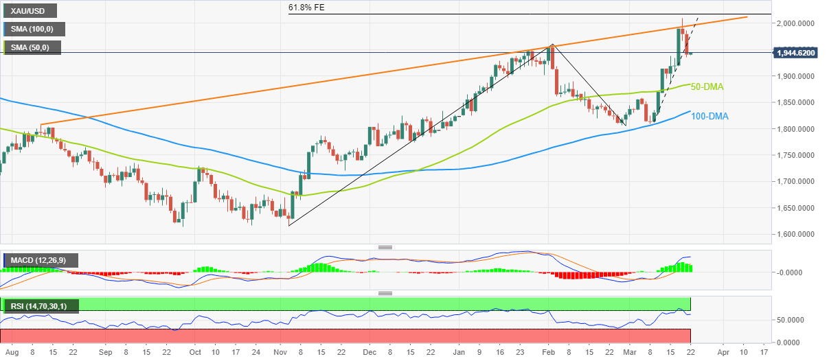 Moving ahead, the UK inflation number and speech from the European Central Bank (ECB) President Christine Lagarde could entertain Gold traders ahead of the key Federal Open Market Committee (FOMC) monetary policy meeting. While the Fed’s 0.25% rate hike is almost given, XAU/USD sellers should eyes for a hawkish developments in the dot plot and comments to push back banking turmoil in Fed Chairman Jerome Powell’s speech.