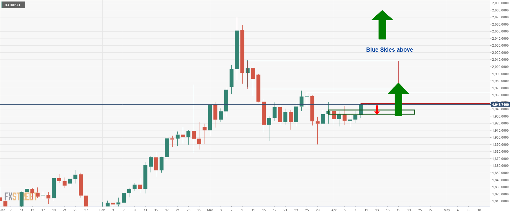 From a technical standpoint, the price needs to hold in the $1,930sit the bulls are going to have a shot in the near future at breaking higher and beyond daily resistance near $1,970.