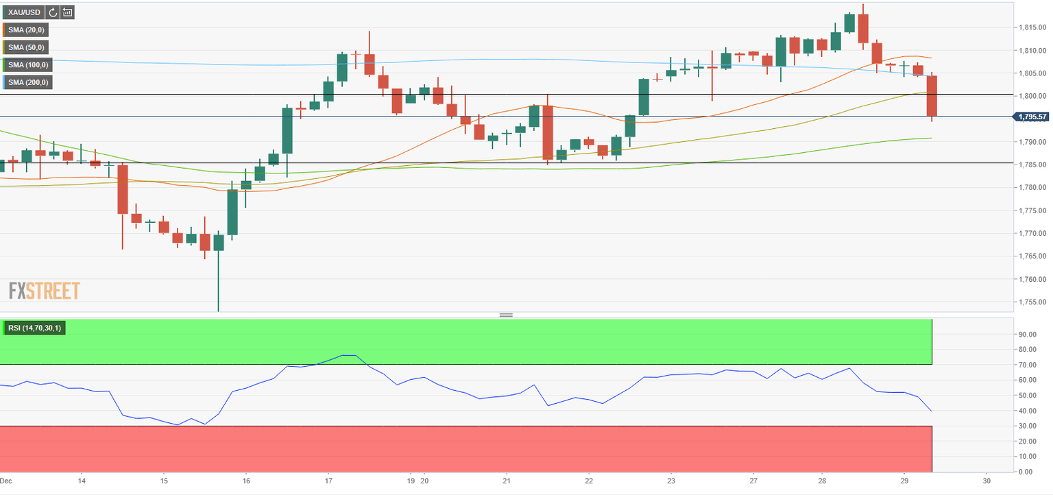 On the upside, $1,800 (psychological level) aligns as first resistance before $1,805 (200-period SMA). In case a four-hour candle closes above the latter, buyers could see that as an opportunity to reclaim the control of the pair's action.