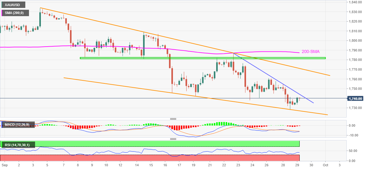 Previous update: Gold (XAU/USD) picks up bids to $1,740, up 0.33% intraday while keeping the rebound from early August levels.
