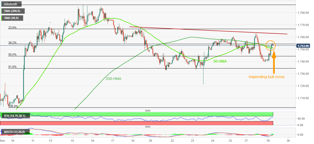 Gold price (XAU/USD) picks up bids to reverse the previous day’s loss, the heaviest in a week, around $1,755 during early Tuesday morning in Europe. The yellow metal’s latest gains could be linked to the mildly positive sentiment in the global financial markets, mainly led by upbeat headlines from China. However, anxiety ahead of the key events restricts the Gold price upside as of late.