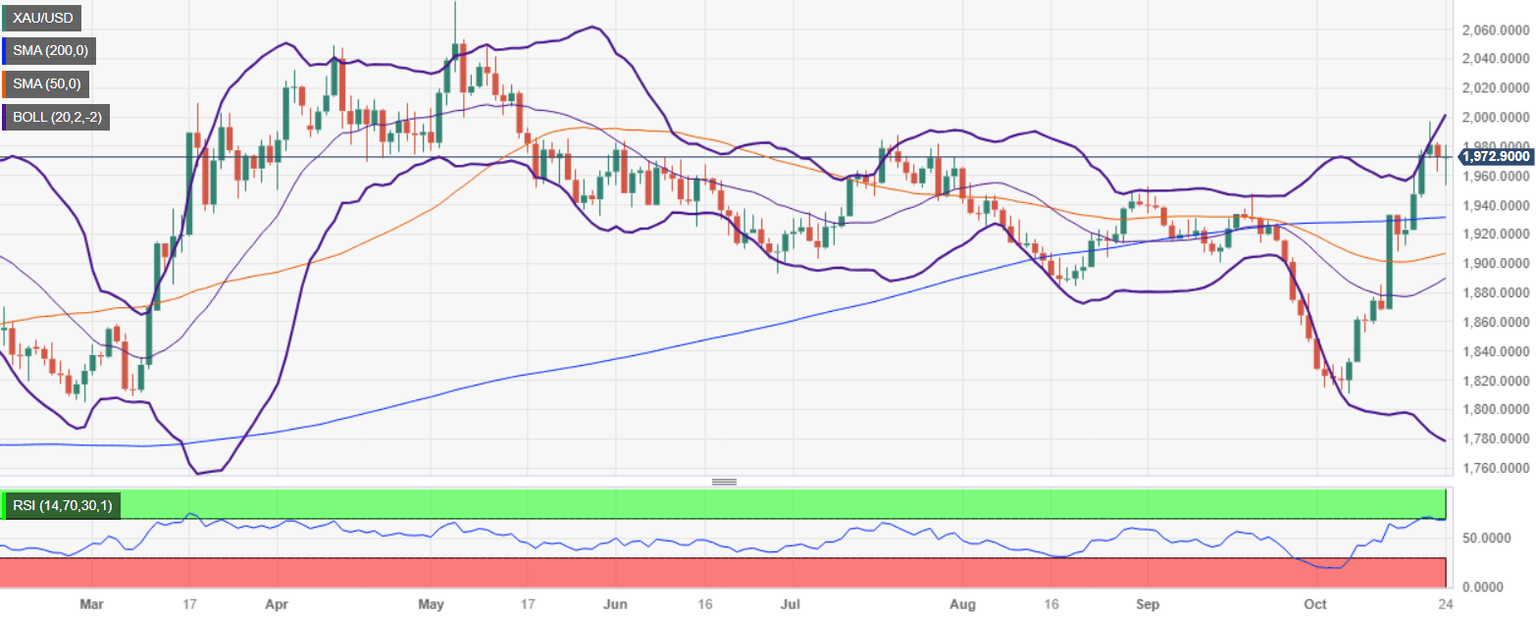 Technically speaking, the XAU/USD remains upward biased after testing support earlier in the day, with prices bouncing at a September 1 high of $1953. Following that, Gold jumped toward the current spot price and could soon challenge the $2000 mark. Once that level is cleared, the year-to-date (YTD) high of $2081.82 will be up next. Conversely, if Gold slides below the October 23 low of $1963.29, expect a drop to $1950.l followed by the 200-day moving average (DMA) at $1931.61.