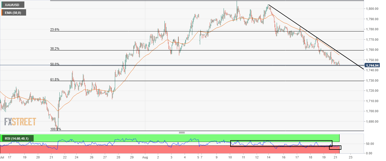 Gold Price Forecast: XAU/USD refreshes day’s low near $1,740, Jackson Hole hogs limelight