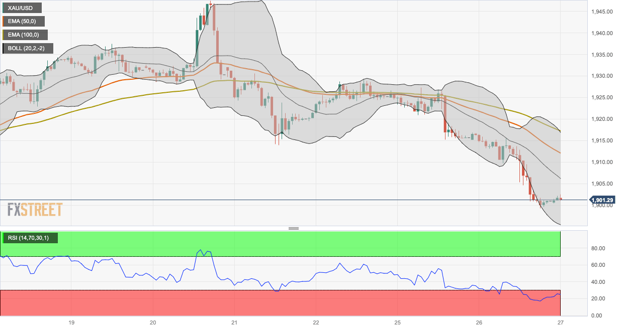 Gold Price Forecast: XAU/USD remains on the defensive near $1,900 amid the USD demand