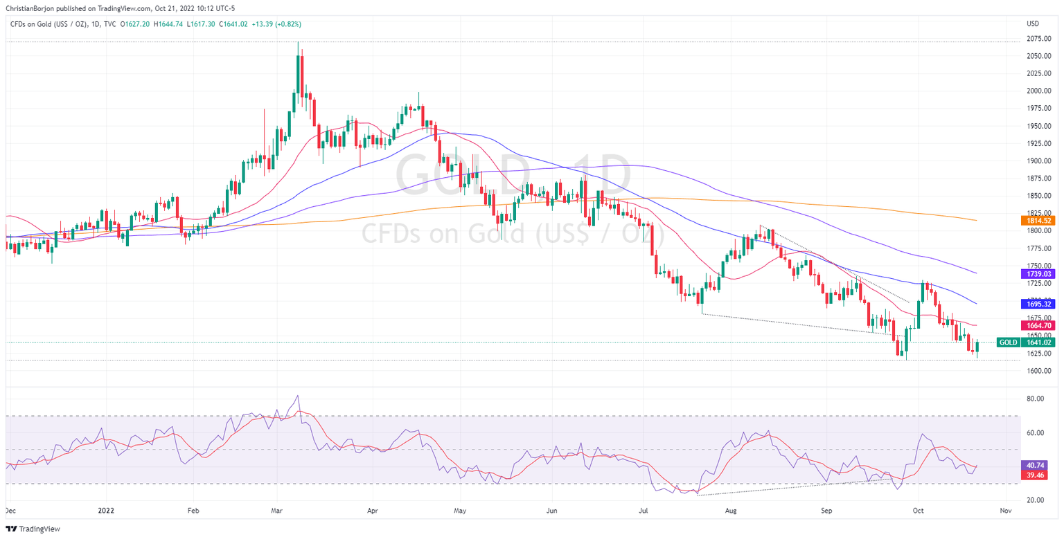 The daily chart shows that the XAU/USD is still downward biased, though it remains close to the YTD lows of $1614.92. The daily Exponential Moving Averages (EMAs) keep their bearish slope, trading well above the spot price, while the Relative Strength Index (RSI) at 39.86, although it’s aiming higher, remains in bearish territory. Hence, sellers remain in charge, though getting a respite, as the yellow metal prepares to prolong its losses for back-to-back weeks. If XAU/USD breaks $1650, a test of the 20-day EMA is on the cards; otherwise, it will remain exposed to re-test the YTD lows.