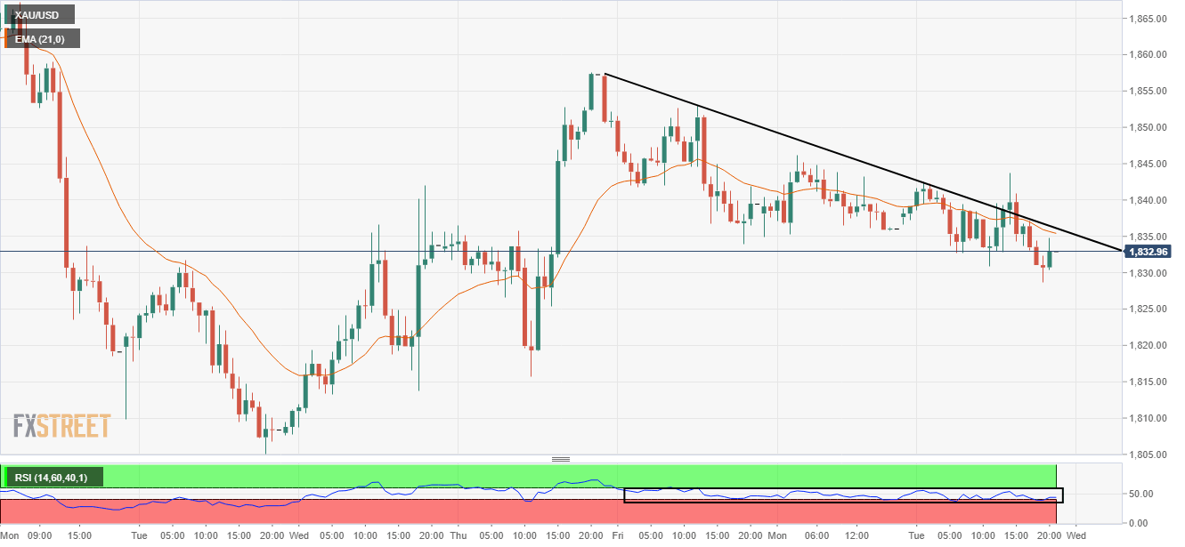 Gold prices (XAU/USD) are testing the waters after a strong rebound below $1,830 in the late New York session. The precious metal has displayed a firmer responsive buying action but needs more filters to confirm a bullish reversal. Broadly, a gradual downside move could be named to the recent move in the asset as investors are keeping an eye on Federal Reserve (Fed) chair Jerome Powell’s testimony.