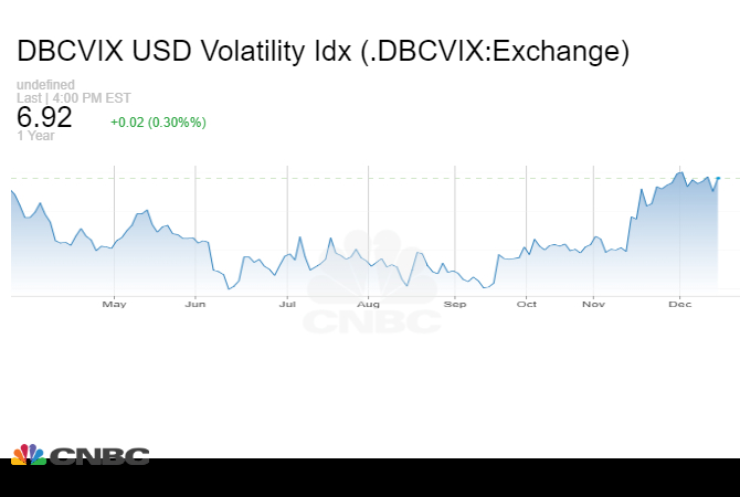 As explained below, much of the hawkishness was already foreseen and given the time of year, flows can be irregular and counterintuitive to the hard fundamentals. Forex volatility was already moving up the Y-axis as per the following DBCVIX USD Volatility Idx: