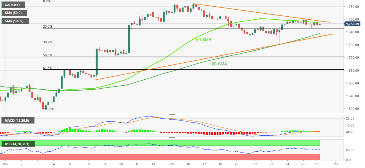 Gold price (XAU/USD) drops for the first time in five days while printing mild losses at around $1,750 during early Monday. In doing so, the yellow metal bears the burden of the market’s sour sentiment, as well as the cautious mood ahead of important data and events scheduled for publishing during the week.