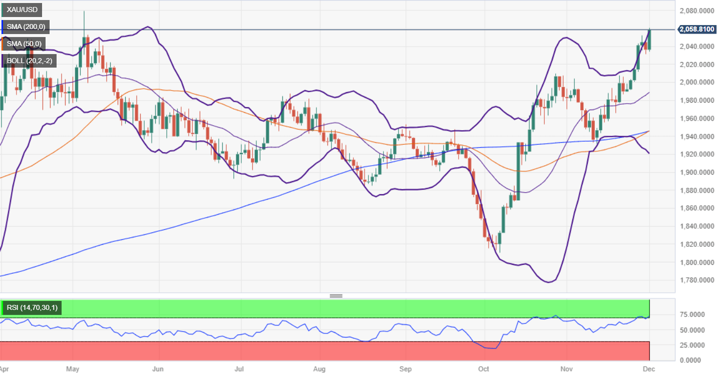 - Gold price rallied to a new multi-month high of $2060.62 amid Powell’s speech.
