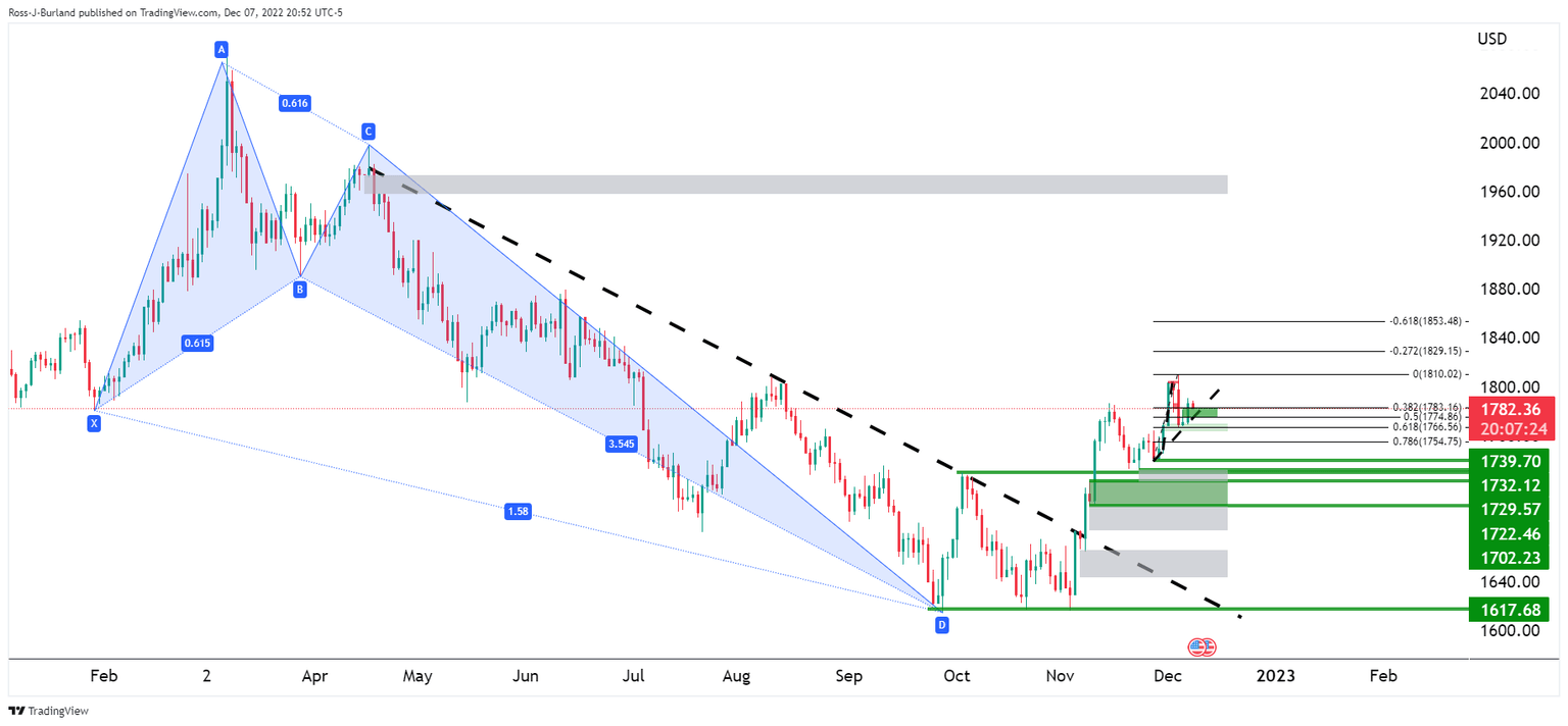 Overall, Gold price investors are searching for direction as we await November Producer Price Index (PPI) data Friday as the next critical data that followed Monday’s upside surprise to ISM Services PMI. The US Dollar has been unable to build on any strength in the anticipation of the data and the absence of Federal Reserve speakers has left the Gold market void of a robust catalyst. Even news of further China reopening measures has failed to impact the Gold price, US Dollar or equities in any significant way.