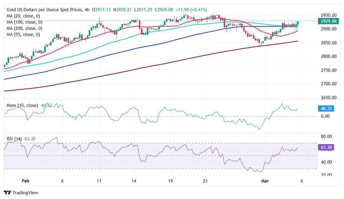 XAU/USD is trading near a fresh weekly high of $2,929.65, with higher highs in sight. The bright metal benefited from the broad US Dollar’s (USD) weakness, the latter affected by tepid United States (US) data and President Donald Trump’s massive tariffs on trade partners.