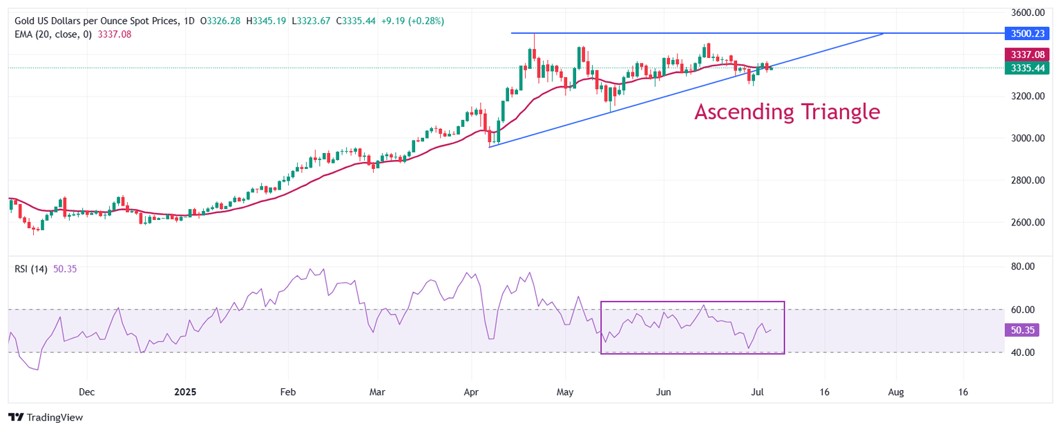 Gold price (XAU/USD) trades well inside Thursday’s trading range around $3,335 during European trading hours on Friday. The yellow metal struggles for direction as investors await clarity of how much United States (US) President Donald trump will impose tariffs on those of his trading partners, which failed to strike a bilateral deal in the 90-day pause period.
