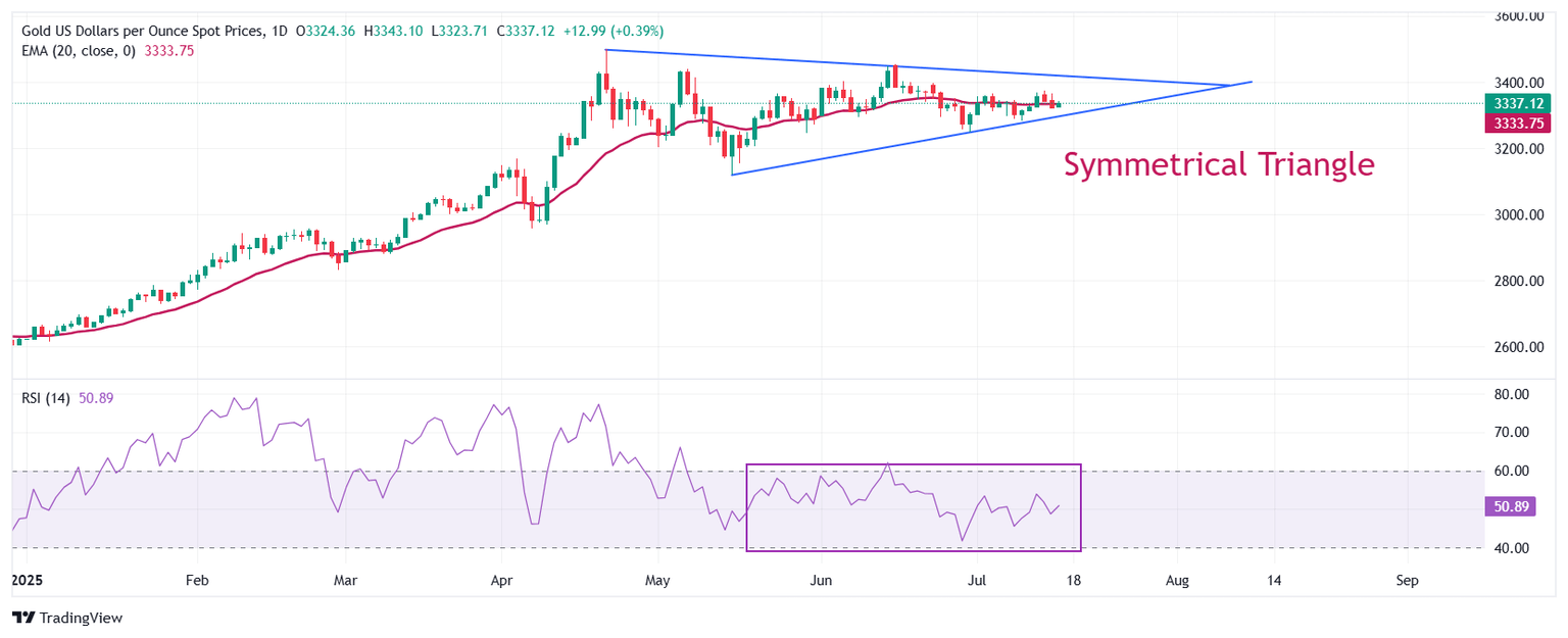 Gold price (XAU/USD) trades in a tight range around $3,335 during European trading hours on Wednesday. The precious metal consolidates as investors await the United States (US) Producer Price Index (PPI) data for June, which will be published at 12:30 GMT.