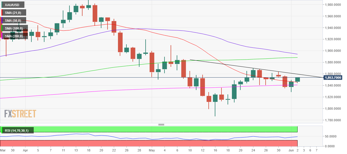 Gold Price Forecast: XAUUSD extends the rebound above $1,850, US ADP eyed