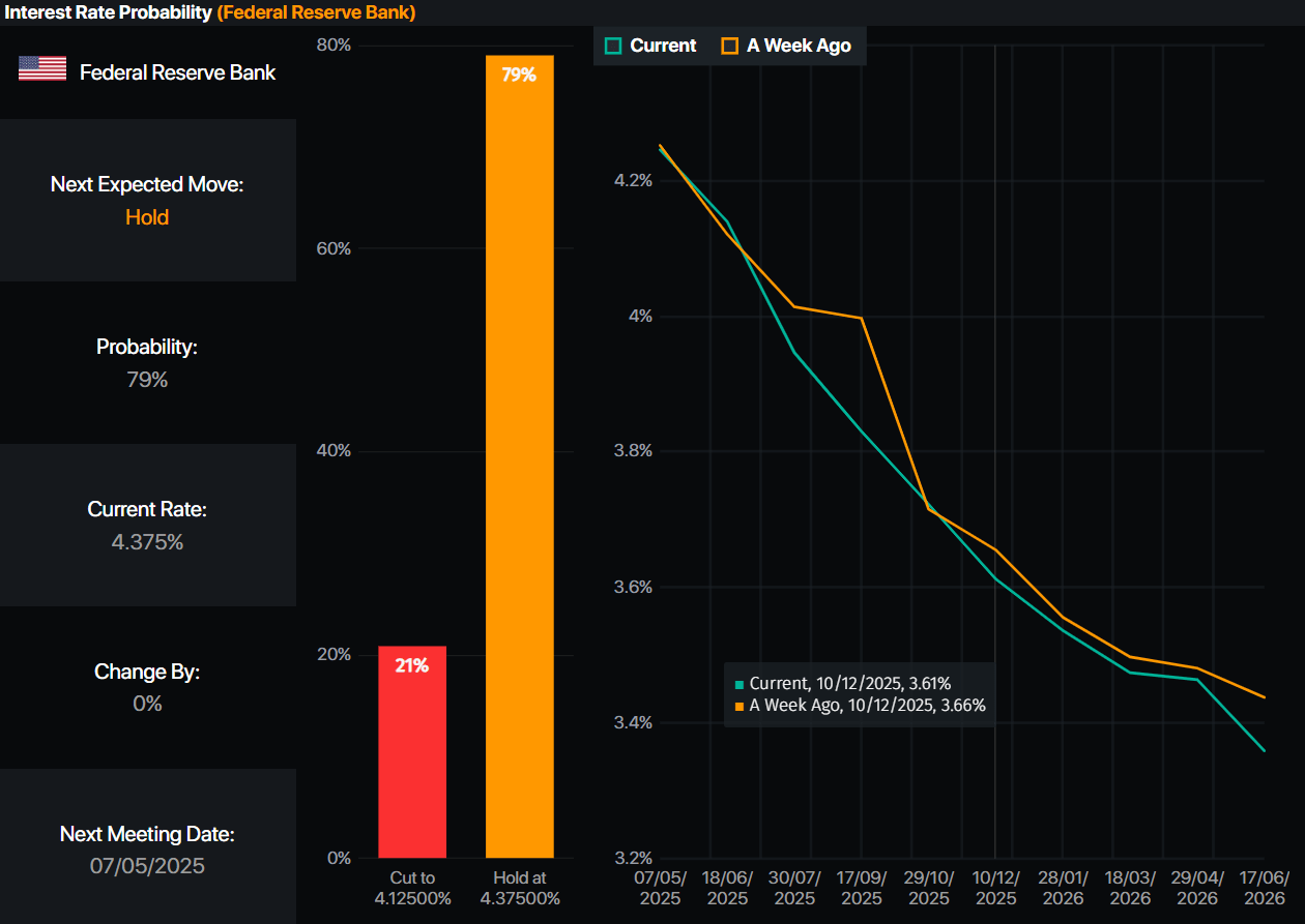 - Despite core PCE uptick, Fed’s Daly sees two cuts in 2025; market now pricing in 73.5 bps of easing.