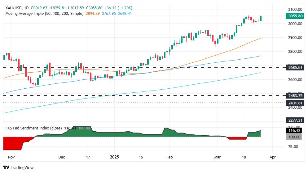 XAU/USD technical outlook: Gold price rallies past $3,050