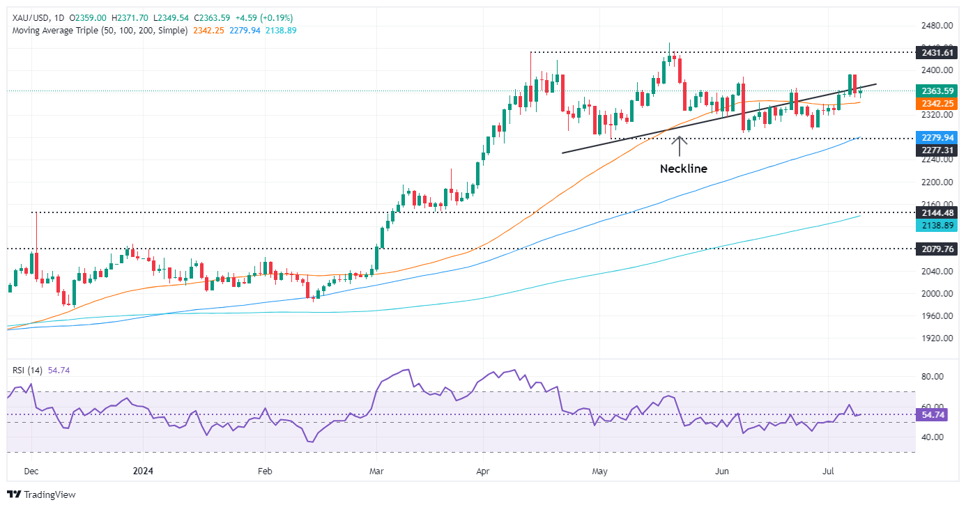 Gold prices edged up during Tuesday’s North American session after Federal Reserve Chair Jerome Powell appeared at the US Senate Banking Committee and stated that inflation is moving toward the Fed’s 2% goal, yet it is not ready to lower borrowing costs. The XAU/USD trades at $2,364, gaining more than 0.25%.