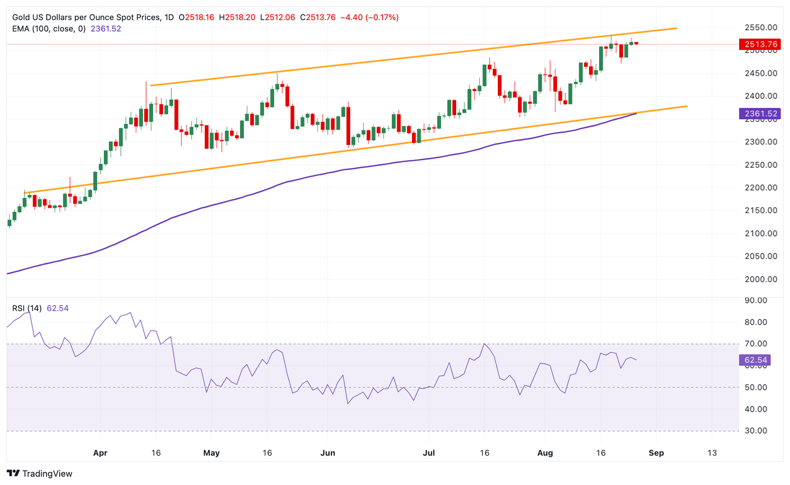 On the other hand, any follow-through selling below the low of August 22 at $2,470 could draw in more technical sellers and take the Gold down to the next support zone at $2,432, the low of August 15. The key contention level to watch is the $2,360-$2,370 zone, the lower limit of the trend channel and the 100-day EMA.