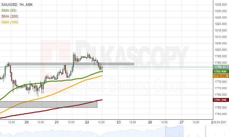 If the 55 and 100-hour simple moving averages provide enough support, the commodity price could reach higher and make another attempt to pass the 1,800.00 level.