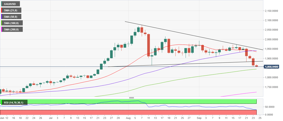 Gold (XAU/USD) finally breached the August low of $1863 on Wednesday, as the sell-off continued amid persistent US dollar strength against its higher-yielding rivals. The yellow shed another 2% to reach the lowest levels in six weeks at $1856 before settling the day at $1863. Concerns over the economic recovery in the US and Europe resurfaced, amid intensifying second-wave of the coronavirus, which further fuelled the dollar’s demand as a safe-haven.