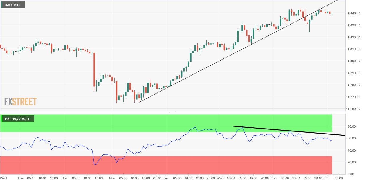 Gold Price Analysis: XAU/USD fades upside momentum towards $1,850 amid mixed catalysts