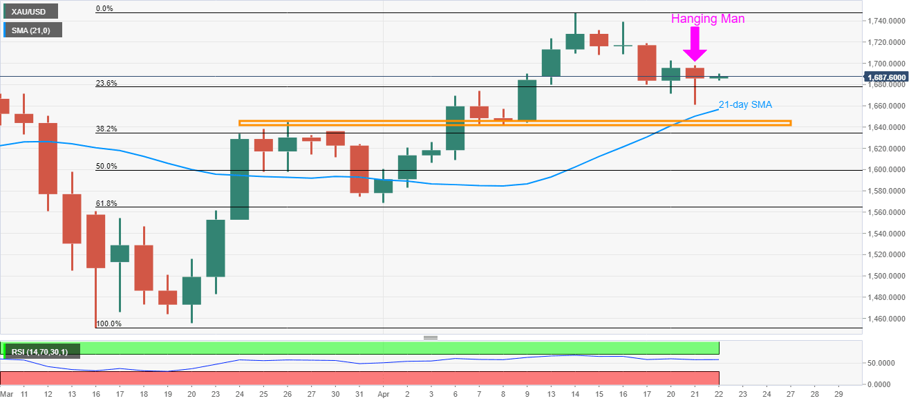 However, a horizontal area including multiple highs and lows marked from late-March, between $1,645 and $1,640, could challenge the sellers afterward. Meanwhile, an upside daily closing beyond $1,700 will defy the bearish candlestick formation and trigger the recovery towards $1,708 ahead of challenging the monthly top close to $1,748.
