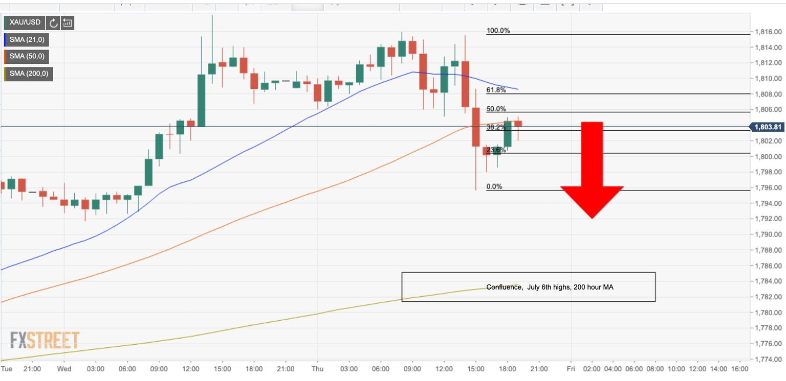 Gold Price Analysis: XAU/USD seesaws around $1,800 amid mixed sentiment