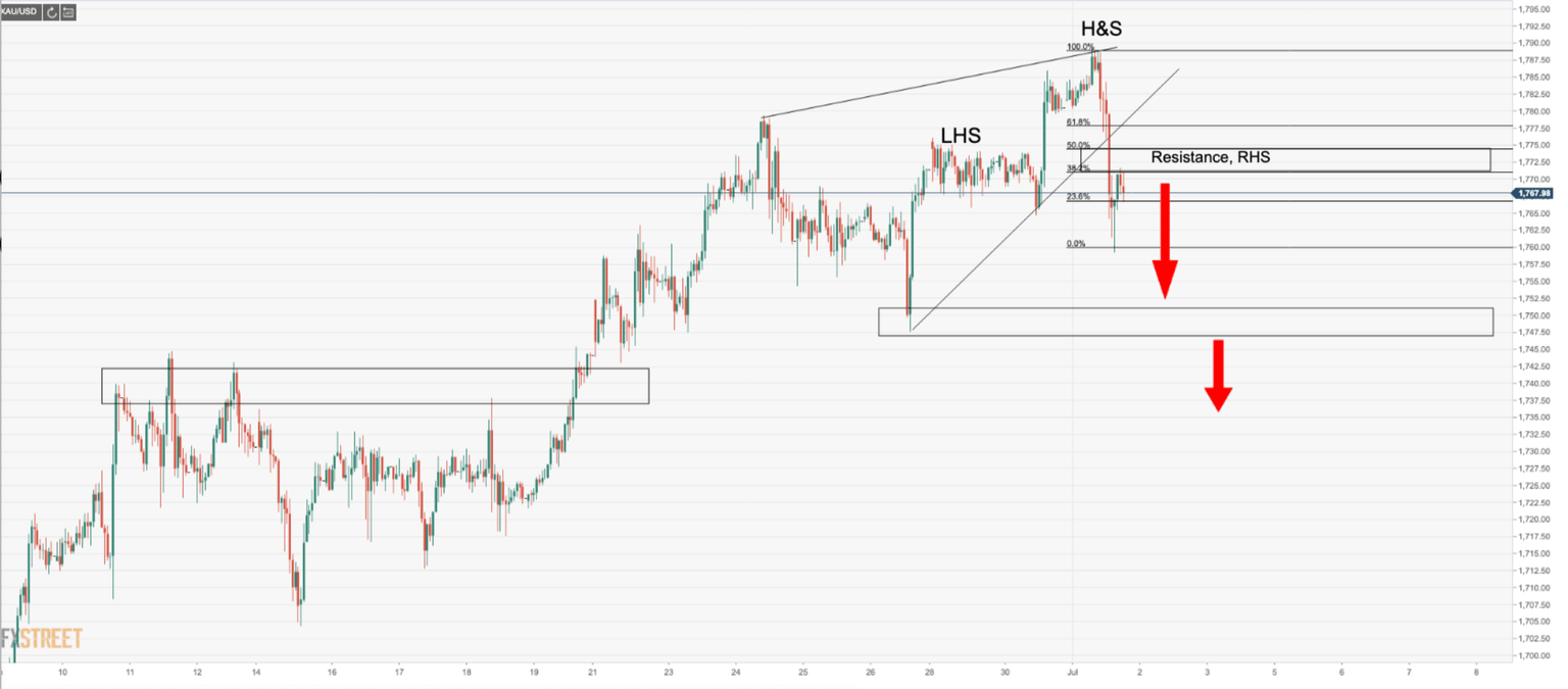 Gold Price Analysis: XAU/USD sellers look for entries below $1,765