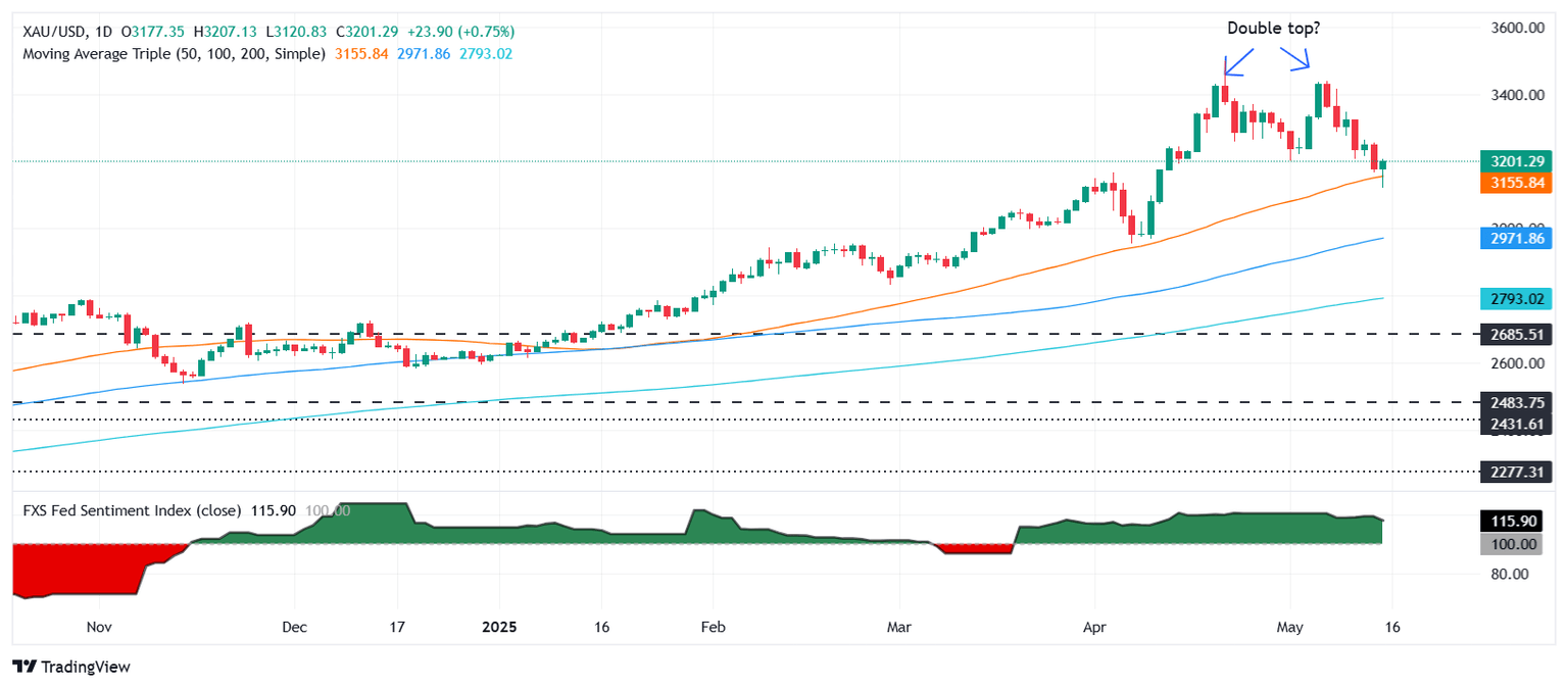 After diving to a five-week low of $3,120, the non-yielding metal found bids that pushed Bullion back above $3,200. Data from the United States (US) showed that the Producer Price Index (PPI) in April fell unexpectedly by 0.5% MoM, missing an estimated 0.2% increase. The core PPI dropped by 0.4%, below forecasts of a 0.3% expansion.