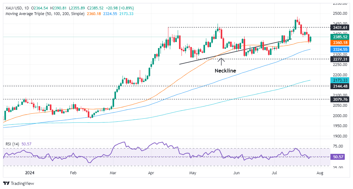 XAU/USD buyers must reclaim $2,400 before pushing prices above the psychological $2,450 area. A breach of the latter will expose the all-time high (ATH) at around $2,483, followed by the $2,500 mark.