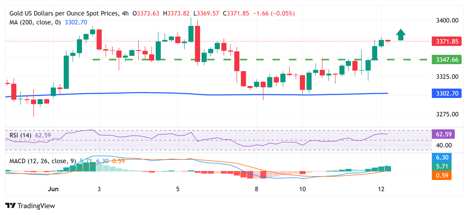 Gold price (XAU/USD) reverses an early European session slide to the $3,338 area and is currently placed in neutral territory, just below a one-week high touched this Wednesday. The initial market reaction to a positive development surrounding the US-China trade war turned out to be short-lived in the wake of US President Donald Trump's fresh tariff threats on Wednesday. Furthermore, rising geopolitical tensions in the Middle East temper investors' appetite for riskier assets and act as a tailwind for the safe-haven bullion.