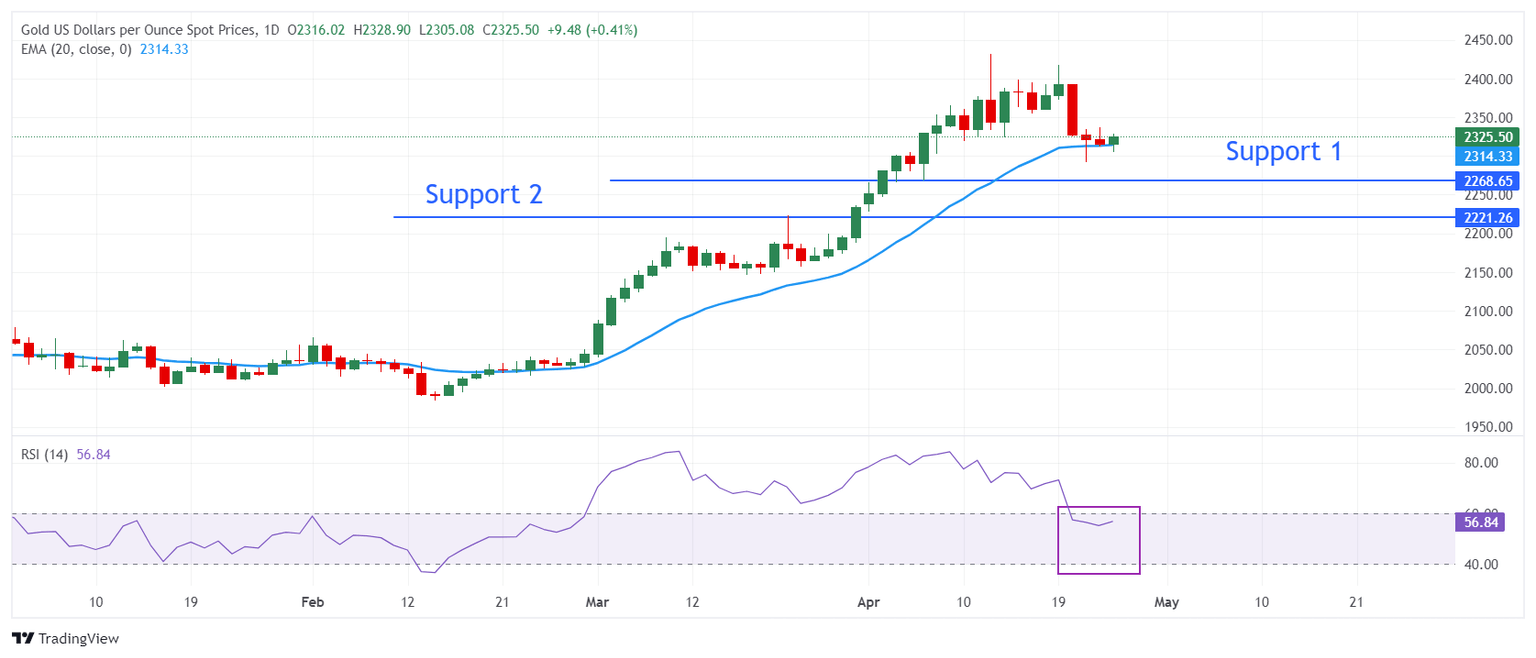Gold price trades above the round-level support of $2,300 ahead of crucial US data. The 20-day Exponential Moving Average (EMA) at $2,314 provides support to the precious metal, suggesting that the near-term outlook has turned volatile.