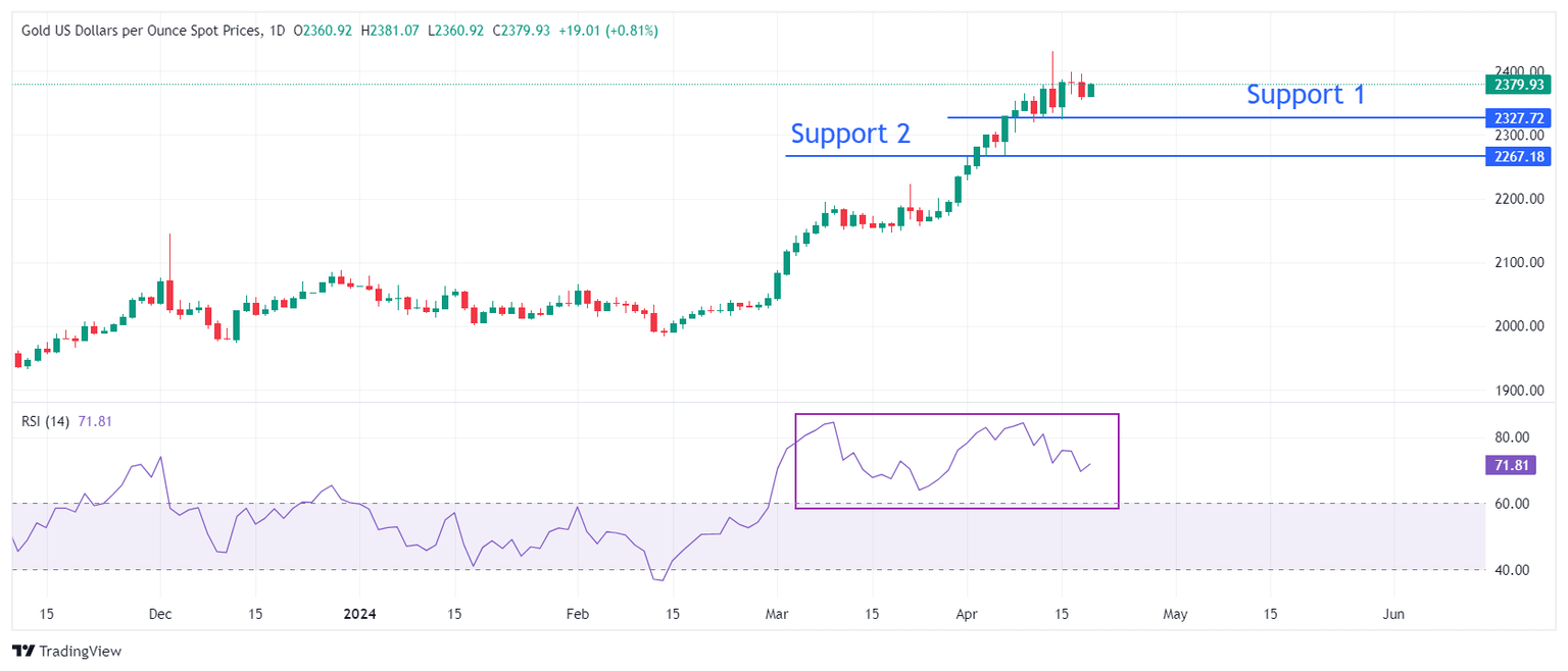 Gold price (XAU/USD) rebounds to $2,380 in Thursday’s early American session after posting losses on Wednesday. The precious metal holds gains amid fears that Middle East tensions could worsen and spread beyond Gaza if Israel responds brutally to Iran.