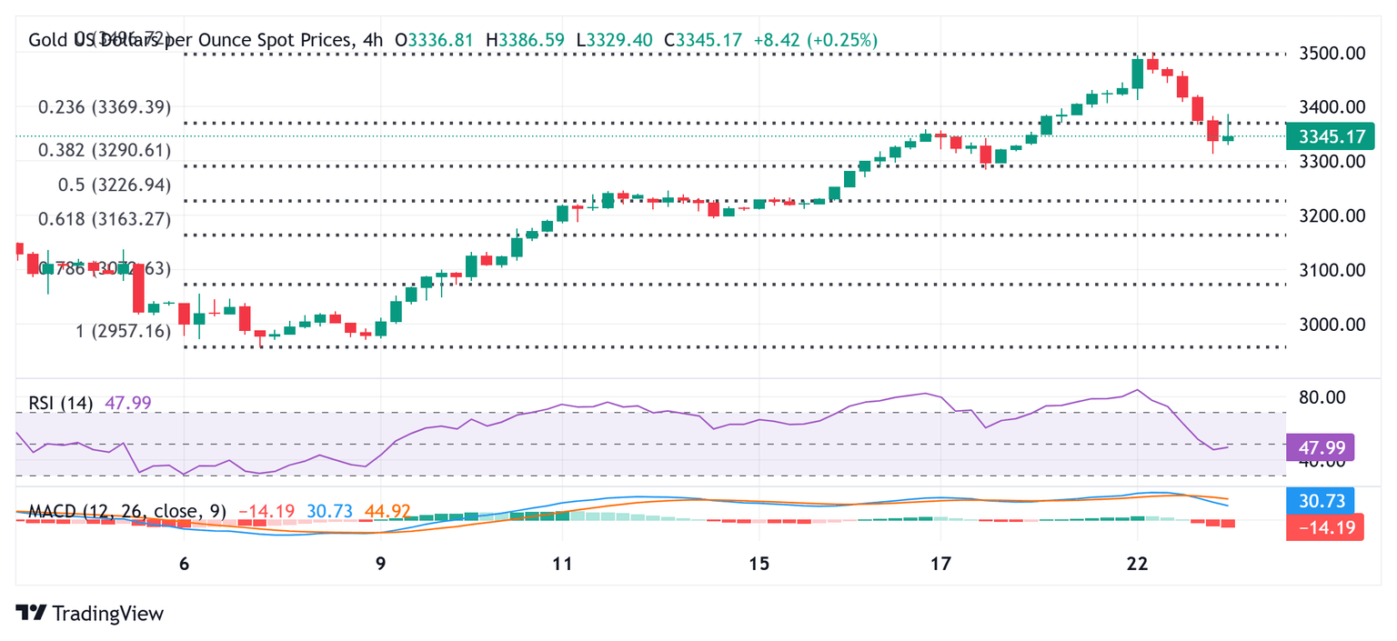 On the flip side, the $3,370 area (23.6% Fibo. level) now seems to act as an immediate hurdle ahead of the $3,400 mark. Some follow-through buying has the potential to lift the Gold price to the $3,424-3,425 horizontal resistance, above which bulls could make a fresh attempt to conquer the $3,500 psychological mark. A sustained strength beyond the latter will set the stage for an extension of the recent well-established uptrend witnessed over the past four months or so.