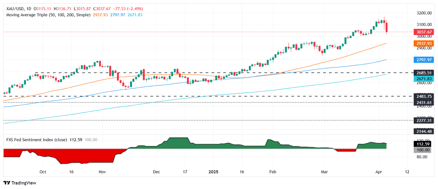 XAU/USD technical outlook: Gold price tumbles below $3,050