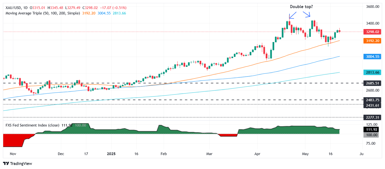 For a bearish reversal, Gold bears must achieve a daily close below $3,300. Once cleared, immediate support emerges at a May 20 daily low of $3,204, ahead of the 50-day Simple Moving Average (SMA) at $3,191.