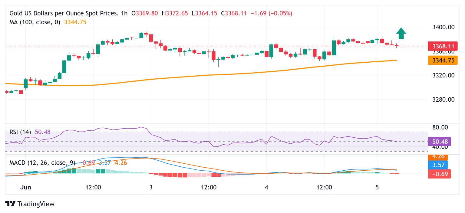 Gold price (XAU/USD) lacks any firm intraday directional bias on Thursday and oscillates in a narrow trading band through the first half of the European session. The commodity, however, remains close to a multi-week top touched on Tuesday and seems poised to appreciate further amid a combination of supporting factors. Investors remain on edge amid rising geopolitical risks and persistent trade-related uncertainties. This might continue to act as a tailwind for the safe-haven precious ahead of potential talks between US President Donald Trump and Chinese President Xi Jinping.