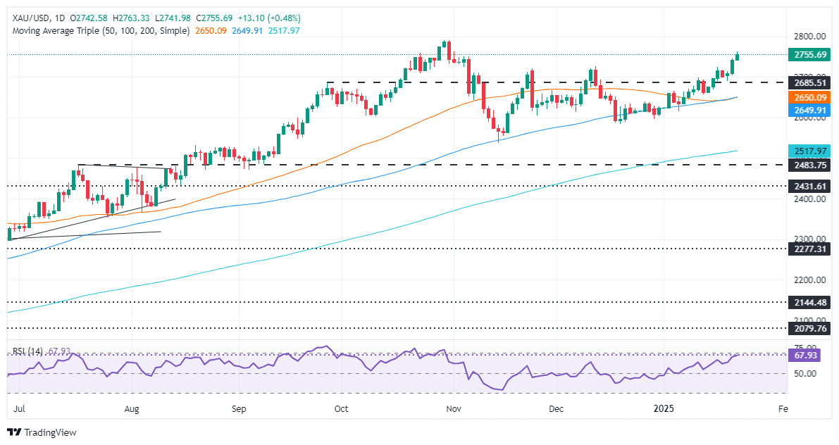 XAU/USD technical outlook: Gold price clears $2,750, bulls eye record high