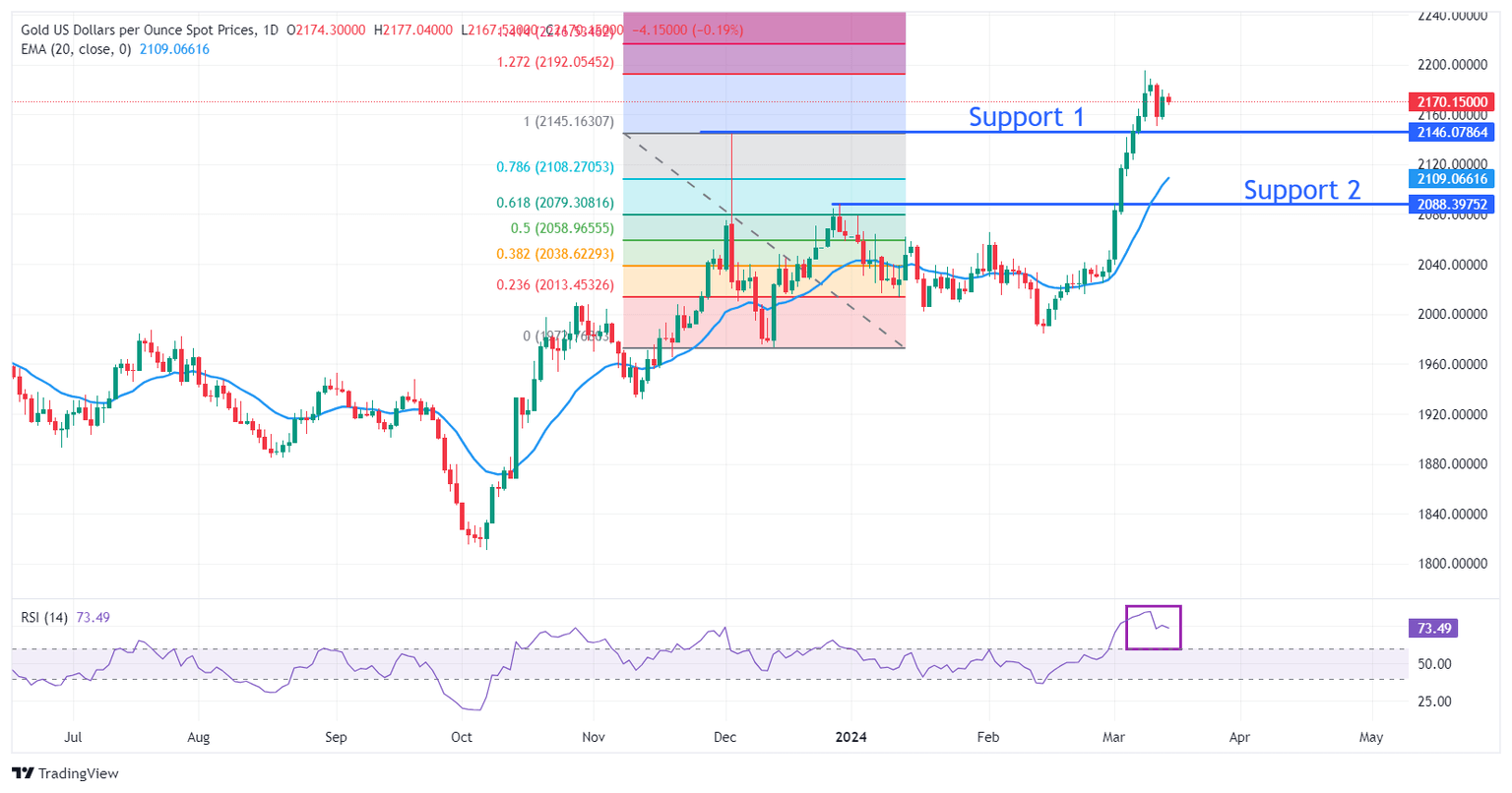 Meanwhile, the US Census Bureau has reported that Retail Sales grew slower than market expectations. Going forward, the major trigger for the Gold price will be the Fed’s interest rate decision, and the new dot plot, which provides interest rates projections. The last dot plot, released in the December meeting, indicated three rate cuts this year. due to firm US Dollar (USD) and bond yields