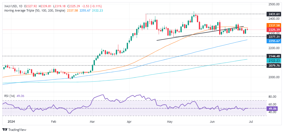 Gold prices retreated during Friday’s session after an inflation report revealed progress in the disinflationary process and raised hopes that the Federal Reserve (Fed) would cut interest rates in 2024. Even though the golden metal jumped and hit a four-day high of $2,339, it retreated somewhat, with XAU/USD trading at $2,324, down 0.12%.