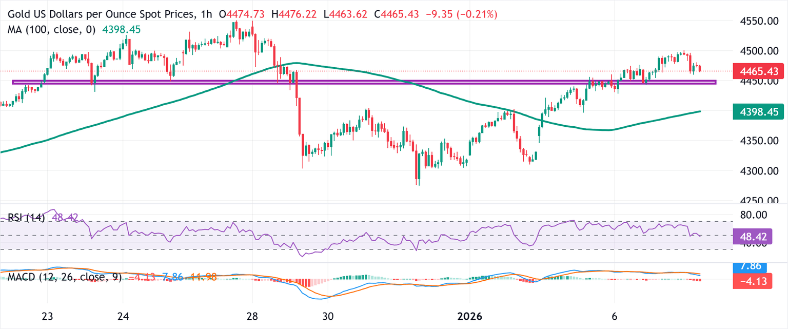- Gold faces rejection near $4,500 as the underlying bullish sentiment prompts profit-taking.