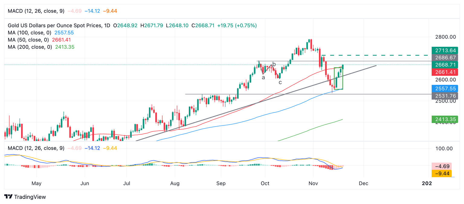 Gold (XAU/USD) extends its recovery into a fourth day on Thursday, rising up into the $2,660s. An overall risk-off tone to markets due to disappointment at Nvidia’s results is weaning investors off stocks and catalyzing safe-haven flows into Gold.