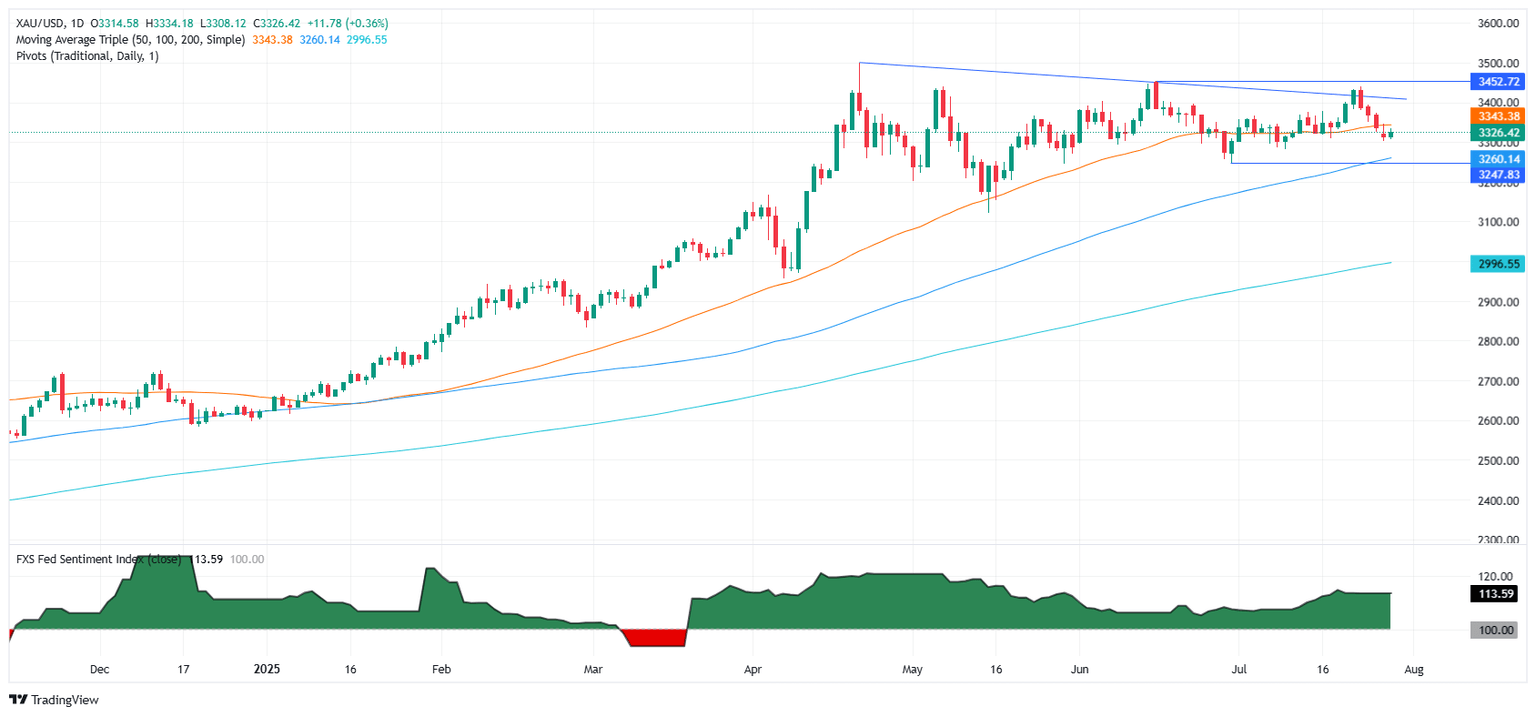 XAU/USD technical outlook: Gold bounces back above $3,300, below the confluence of 20-, 50-day SMAs