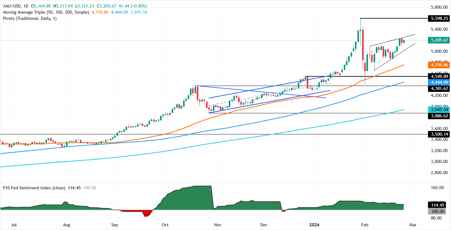 XAU/USD Technical outlook: Gold’s advance at risk below $5,250