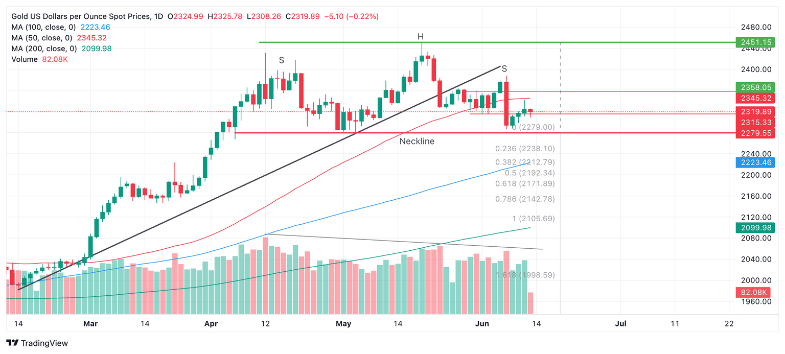 Technical Analysis: Gold potentially forming Head-and-Shoulders
