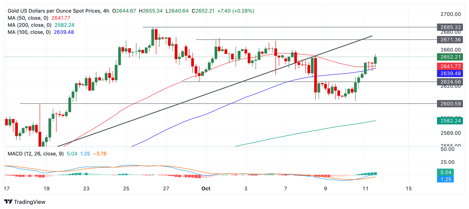 Gold (XAU/USD) extends its rally, trading in the $2,650s on Friday, after the release the the preliminary Michigan Consumer Sentiment Index showed a slide in sentiment in October.