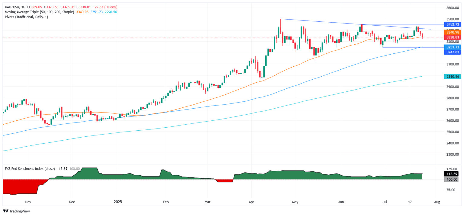 Upbeat trade news has emerged since Monday, following the US and Japan's agreement. News that a deal could be replicated with the European Union (EU) ahead of the August 1 deadline pushed the non-yielding metal below $3,400 and toward a weekly low of $3,325.